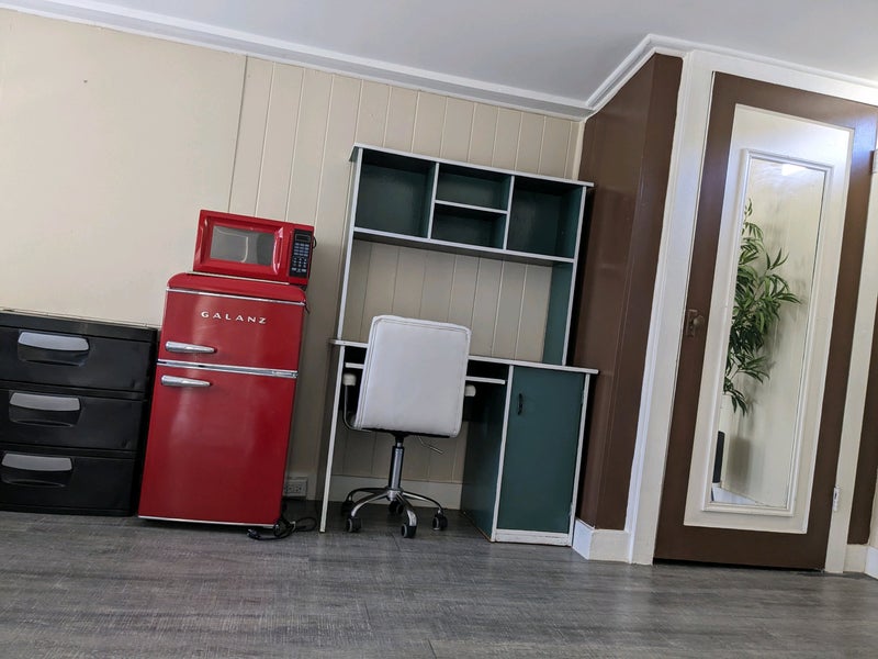 The room has fully furnished and closet with convenient furnitures. Including Bed with the blanket pillow, our desk, and a chair. The mini-refrigerator, microwave.
