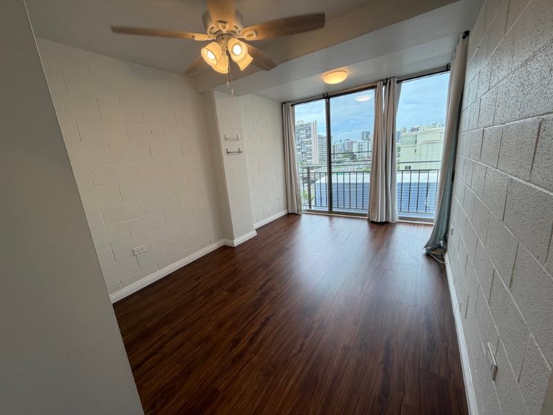 The unit includes a covered parking stall and the building is secured. There is AC in the living room, and a new ceiling fan has been installed in the bedroom. Laundry facilities are coinoperated and conveniently located a short distance away. This apartment offers breathtaking sunset views of downtown Honolulu and is now available for rent.