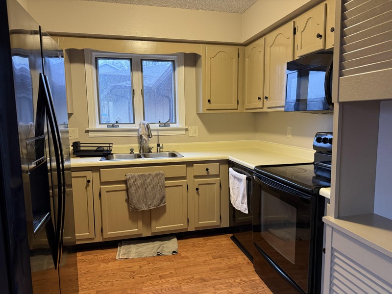 Shared spaces are fully furnished and contain all appliances, kitchenware, and house supplies you could need. Additionally, the basement houses a clothes washer and dryer. There’s a front and back yard and a garage, but since it only fits one car you will have to park in or beside the driveway in the grass. Bus routes are easily accessible, and with a car or bus most necesities are only a 5 minute ride away.