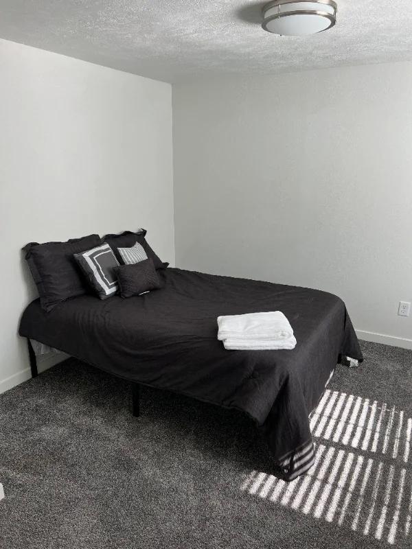 PRIVATE BEDROOM This is fully furnished single family home that is rented out by the room. The whole house has been completely renovated. All utilities are included, high speed fiber internet, plus a bimonthly cleaning service. The two kitchens are fully stocked with dishes, silverware, bakeware, small appliances, etc. The living room has a couch and inch smart tv. Each bedroom is furnished with a full sized bed, bedding, and towels and has its own secure lock. Laundry is in the home and free for tenants to use . Located in the center of Idaho Falls off of John Adams and Woodruff. This is a short term, month to month rental. It can be leased out for as little as a few weeks, or as long as you need.