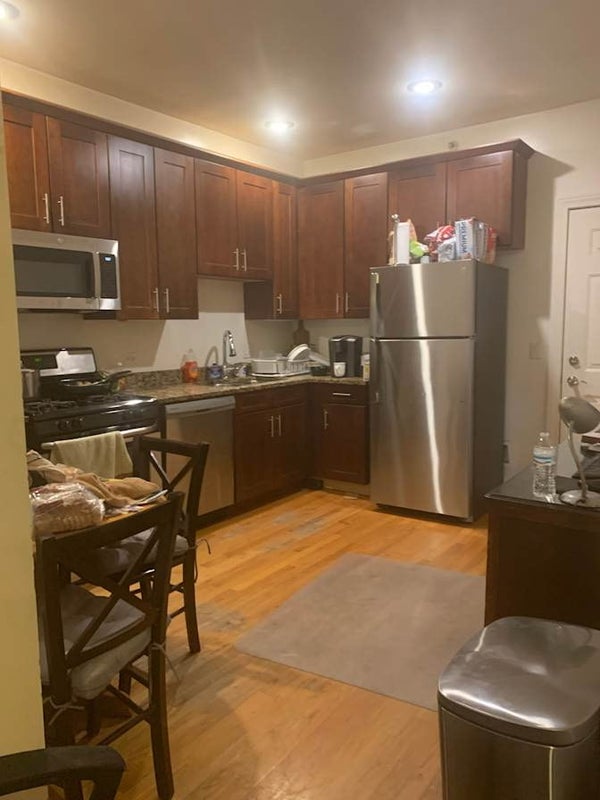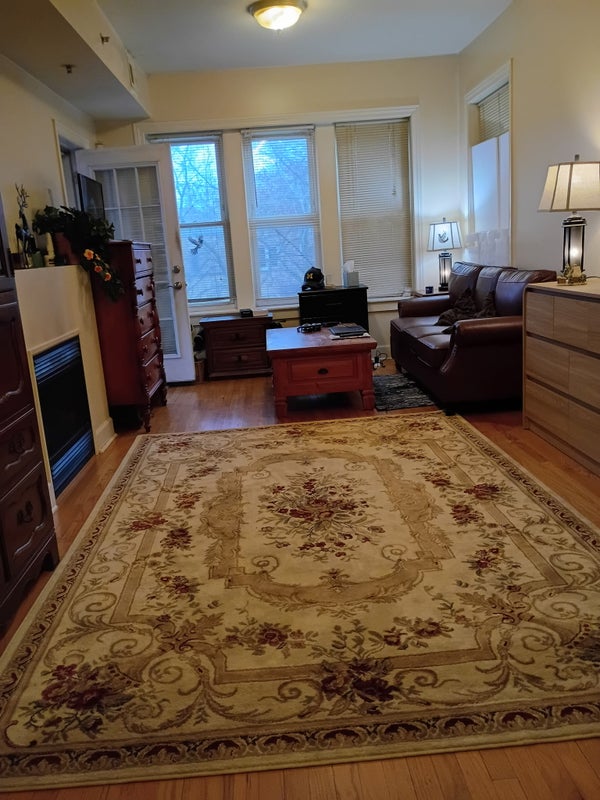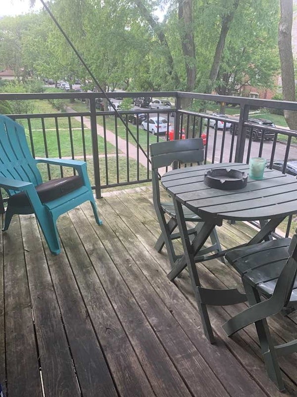 Large Bedroom w/4 feet of Closet space in apartment to share with Hardwood Floors, Central Heat & Air, with Large Eat-In Kitchen with all the conveniences of Home, e. g., Dishwasher, Microwave, Toaster Oven, etc.. The Living Room is large with a Fireplace, and to make life easier, there is a Washer & Dryer in the Apartment. And to help make Life more enjoyable we have a good size Balcony with a table and 4 chairs and an additional large chair for your comfort to sit and enjoy fresh air among the tree tops in a Safe & Quiet Neighborhood in Evanston.