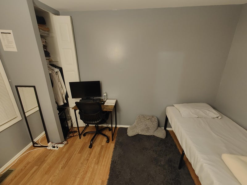 1 room available in 3 bedroom 2 bathroom house. Other 2 rooms are occupied by two Indian boys. Both are working full time and are neat and quiet. Laundry in the house. One parking available. Furnished room with bed, mattress, table, chair. Close to walmart, dollar store, bus stop 554, park for running.