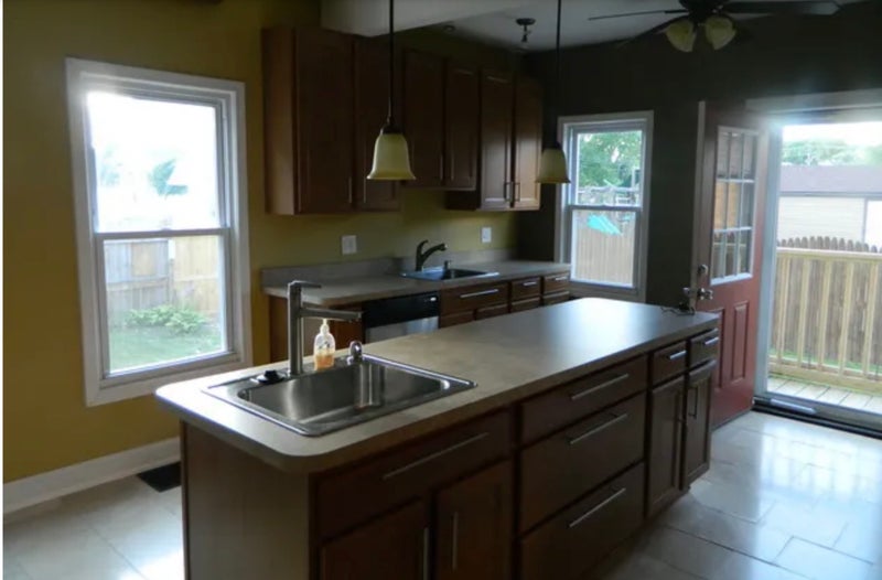 There’s a lot of room in the house, including an extra large kitchen with two sinks and a 12 foot island. There’s a separate dining room, living room, and an extra guest bedroom on the first floor. A second bathroom with a shower is also on the first floor. There’s a washer and dryer in the basement.