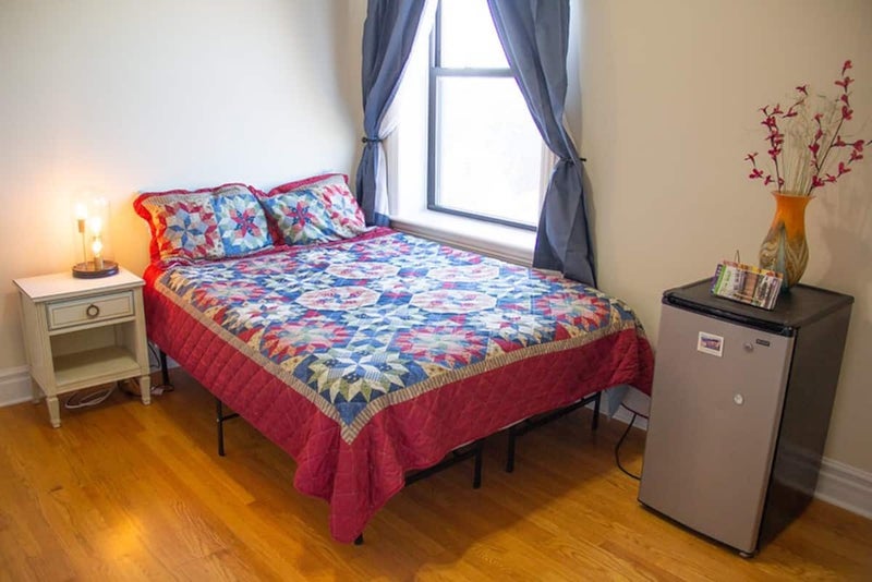 I am offering this room short term 1-4 mo which is why it has a low rate. This might be good for someone moving in/out of the city and getting things situated. Fully furnished, private bathroom, washer/dryer in unit, central air and heat, metra 1 block away, busses in all directions, very limited street parking.