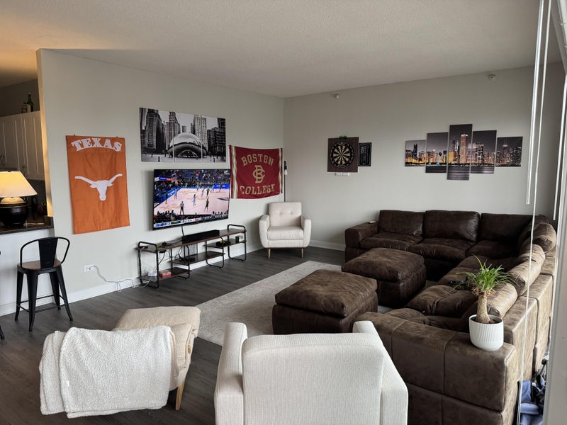 The Grand Plaza is located at 540 N State Street in River North. One of our roommates is moving to Evanston, so we’re looking for a roommate. The unit is a 3-bedroom on the 54th floor, is fully furnished, has new appliances (including washer and dryer), and has a balcony. The Grand Plaza has a gym, sauna, outdoor pool, and other amenities.