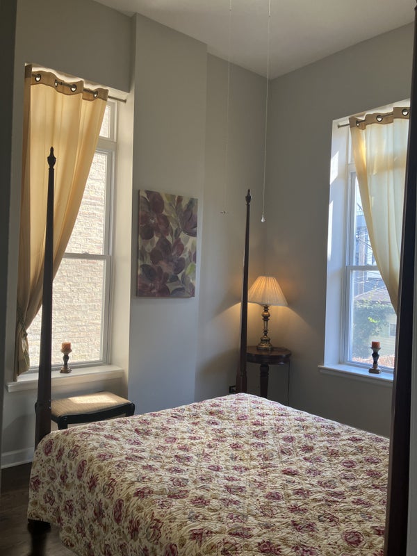 The apartment is ideally situated near a grocery store and public transportation (less than a 5-minute walk to the bus or 10 minutes to the Blue or Green Line). It's also close to the Medical Center, United Center or D About the apartment: • Located on the 2nd floor of a 3-flat building • Open-concept kitchen with brand-new appliances, including a gas stove, microwave, coffee machine, refrigerator, and dishwasher • Spacious living room with soaring 12-foot ceilings that create an inviting and elegant atmosphere • Shared bathroom with a shower • Central air conditioning and forced-air heating • Backyard terrace • In-unit washer and dryer The bedroom available for rent is large enough to comfortably fit a queen-sized bed, a dresser, and a desk.