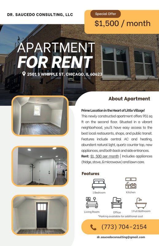 Spacious Bedroom + Separate Office Room (perfect for remote work or guest space) Bright, open living room with great natural light Full kitchen with brand new appliances (fridge, stove, microwave) Modern bathroom with updated finishes Central AC & heating for yearround comfort Two private entrances (side + rear) for added convenience Access to outdoor patio space Fully rebuilt property () with updated systems Parking available for an additional fee