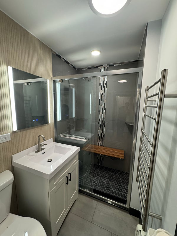 The modern kitchen features brandnew appliances, new cabinetry, and updated finishes. The bathroom has been fully renovated with a clean, contemporary design. Everything is new.