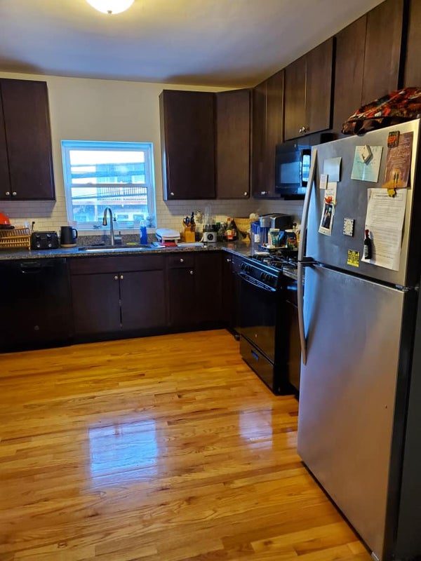 WHAT YOU GET: $695/month with 3 total roommates. Water and garbage included. Wifi, gas, and electric are separate expenses. The room for sub let is spacious and has a full size bed with a large dresser, bookcase, and trunk with a walk in closet. Spacious bathroom with storage space shared with one roommate. There is an in house washer & dryer - both are free! There is also central AC and heat, a dishwasher, and stainless steel appliances. Because we are in the 2nd unit, the apartment has lots of natural light!! There is extra storage space in the walk up area to the unit. It is very close to the 22, 50 (direct to brown line) and 92 bus lines and a 20 minute walk to the red line. Grocery stores, cute shops, good coffee, restaurants and gyms within walking distance. Good free street parking. No smoking indoors and no pets. This is a refurbished apartment, fully furnished, with a set of empty draws and a full size bed in the available bedroom. Located near Clark St and Foster in Andersonville, close to Winnemac Park and the Clark Street Corridor.