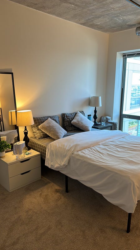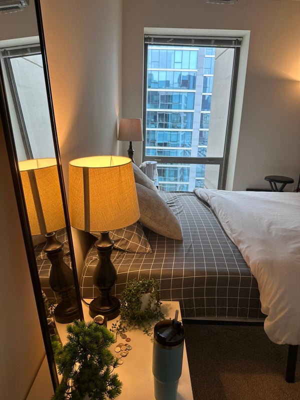 - Available from: April 1st - Aug 3rd - Rent: $1580/month - Size: Spacious with walk-in closet & queen bed - Application fee for lease transfer: $50 Apartment Features: - In-unit washer & dryer - Central A/C & heating - Dishwasher, oven, microwave, Air fryer - Sofa, TV, Table available in living area. - Floor-to-ceiling windows Transportation: - 3 mins walk to CTA Red Line - 7 mins walk to CTA Blue Line - Multiple bus routes within 5 mins Building Amenities: - Fitness center - Movie theater & lounges - Rooftop & playground - Parking available for aprox $250/mo in building or find a cheap parking spot around. I will also point out I currently have the best parking spot in the whole building covered and right at the entrance and I can probably transfer it.