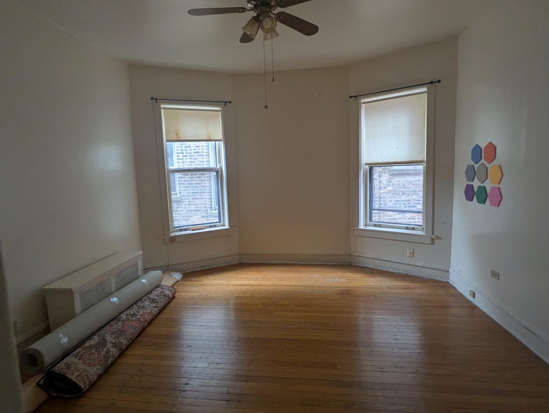 THE APARTMENT: * An entire floor of a spacious a classic six-flat with large windows, hardwood floors, and high ceilings. * Fully equipped kitchen with a gas range, dishwasher, and two large (shared) pantries. * A modern washer and dryer, shared with the five other units. * This qualifies as a three bedroom apartment, but the third bedroom is half the size of the available bedroom and in the past has been used as a guest room/home office.