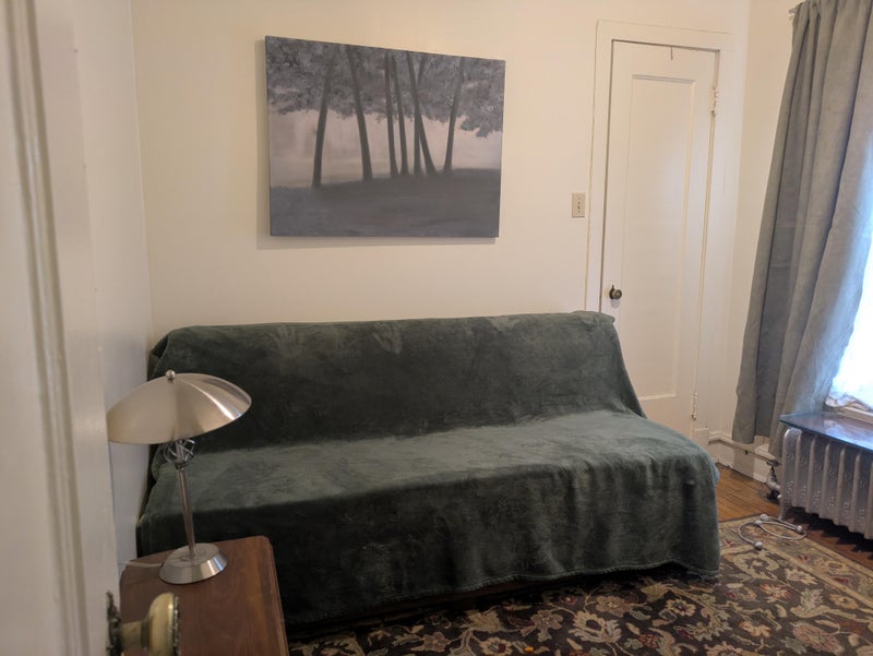 YOUR ROOM: * Large (13’ x 12”), quiet, private bedroom with two large windows, a window air conditioner, a large closet in the bedroom and a walk-in, private closet across the hall from the available bedroom. Additional shared storage is located in the apartment’s secure basement. * Hardwood floors and high ceiling (with ceiling fan). * The bedroom is not furnished.