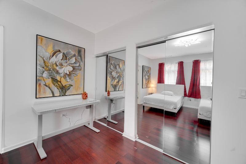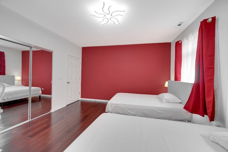 # Shared Room in a coliving space, Room shared with another tenant. Fullsize Plush beds with inch gel memory foam mattress, Bedside tables with builtin USB ports & lamp shade, Blackout Curtains, Closet with fullmirror doors, ample storage for belongings, InSuite Bathroom with dual vanity. # InRoom Workspace, Heightadjustable glasstop desk, Highback ergonomic swivel chair # Common Area, inch K UHD Samsung Smart TV, Ashley Sofa with Center Table, End tables & Lamps, Dining Table & chairs, Modern Light Fixtures, White Curtain Sheers, Balcony with Accent Table & Chairs, Fully Equipped Kitchen with new Microwave, HighSpeed WiFi, Dishwasher & Refrigerator, InUnit Laundry, Central Heating & Cooling, Bathroom with new fixtures, # Why us? Safe Neighborhood, Movein ready, Steps away from Starbucks, , Bars, divvy stations and restaurants, Easy access to bus routes, CTA blue line and III highways, Walker’s Paradise, Haven for students and working professionals