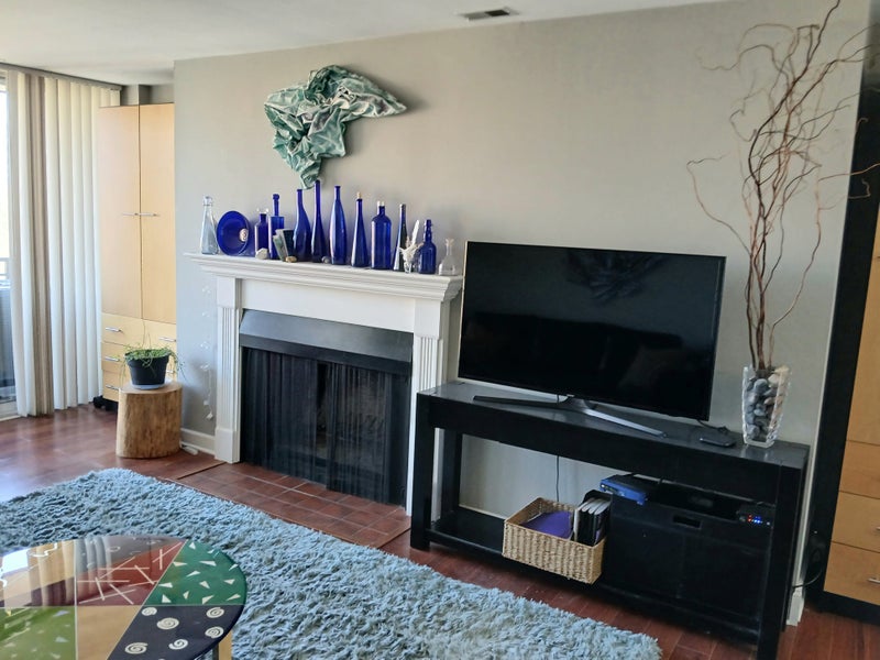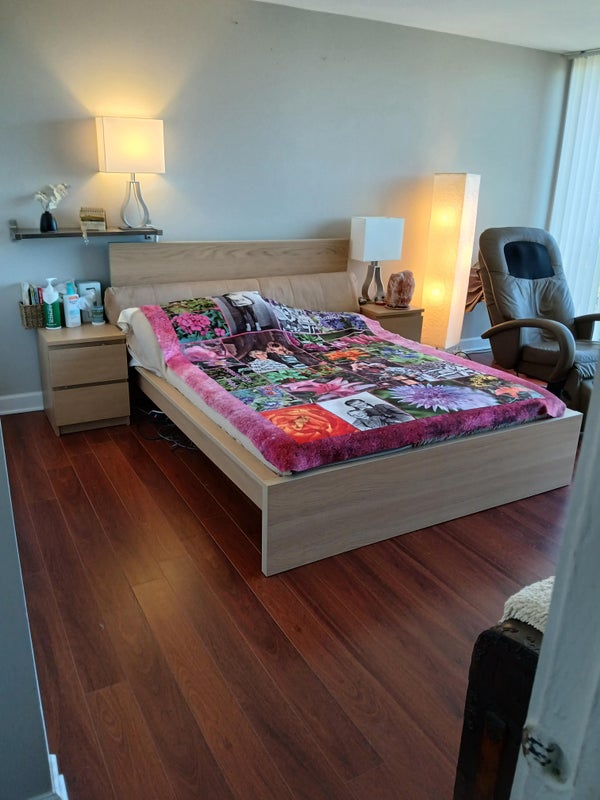 Hi, I have an unfurnished 12 x14 room for rent $1300 per month incluced are all utilities, cable, parking spot, floor to ceiling windows, verticle blinds, laminate wood flooring, on the top floor of a five story apartment building. Parking included with rent. It's a 2 bedroom, corner unit, so plenty of natural light. The bathroom is a hotel setup. One full bathroom with another seperate sink and mirror medicine cabinet.