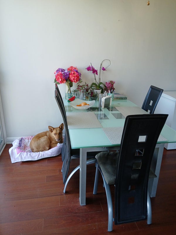 I have a very friendly, loving well behaved medium size dog: Misha (After the initial 10 minutes of excitement meeting a new human) She does shed but I try my best to keep the place hair free.