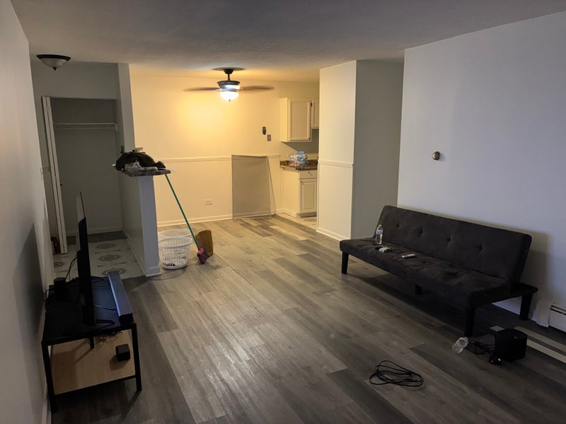 No air conditioning. 1 vehicle parking permit permitted. One tiny storage closet located within the apartment, outside of bedroom. Must make sure shared areas are clean before leaving apartment. Shared with two other habitants are Living, Dinning, Kitchen and Bathroom. Water, trash, internet and electricity included in monthly rent of $900.