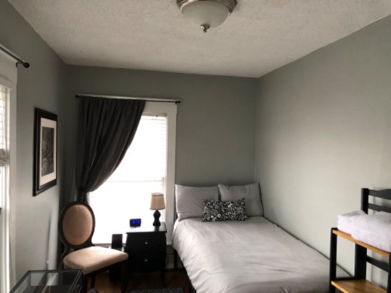 Centrally located in downtown. Lots of local eateries and shopping to walk to. Multiple medical facilities in area for traveling health care providers. Internetcable on TV's in each room. Large fully stocked kitchen for cooking and entertaining. Private rooms with touch pad security locks. Large front porch for relaxing after a long day. Quality linens and towels provided. There are private rooms available. Please complete the prequestionnaire to start the application process.