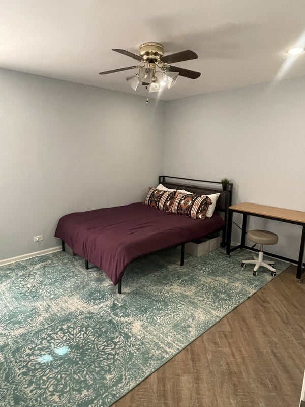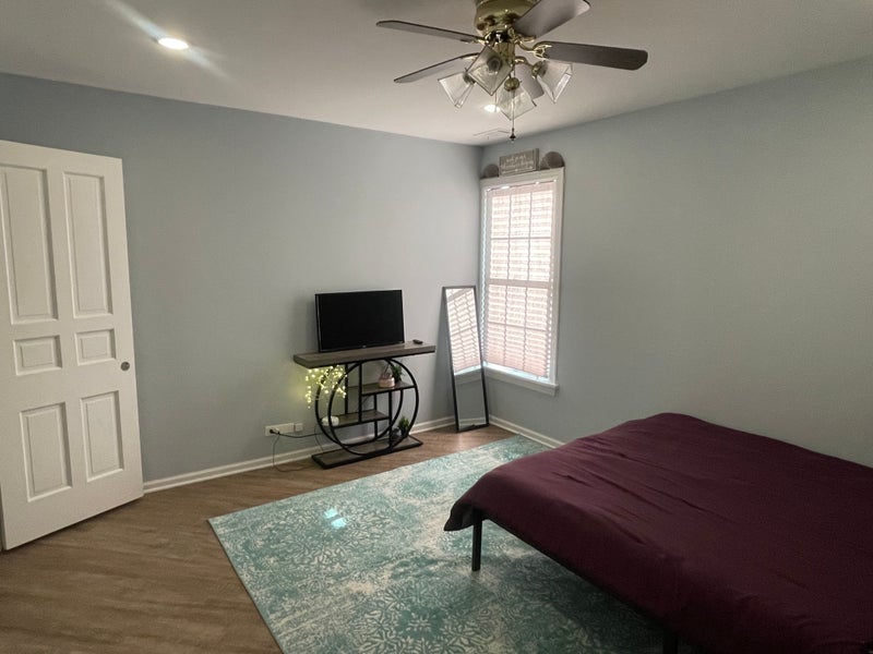 This is a condominium where myself the landlord lives in the other room. I have my own full bathroom. You would have a furnished bedroom that has a locking door. You would have your own full bathroom. The kitchen and living room and utility room are assured spaces. You would have your own cupboard in shelves in the kitchen. Parking is out front of the building in the driveway.