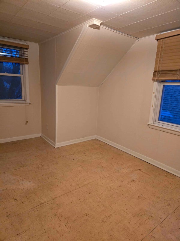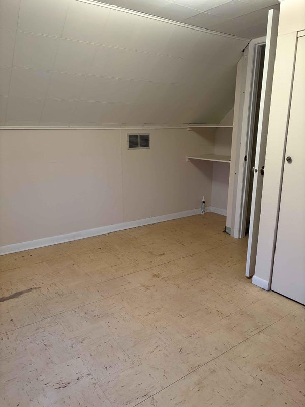 As for the actual property, the room is on the second floor, with two windows, a closet, and built in shelving. There is one shared bathroom, and a shared living room. We have 4 total people living in the house, and we have a variety of professions such as full time or part time, and some of us are still in school. We are all gamers, and some of us tend to be loud about it but never past 8pm. Two of us work weekends starting at 5am, so weekends are typically quiet. We also have 2 cats, so we are not accepting roommates who have roaming animals such as a dog or cat. However, an animal that stays in the room (such as a mouse, hamster, or snake) is fine. Edits to the room are fine, such as with screws or nails. The tiling is old and unable to be replaced, so there is staining but no damage to the actual floor. The room is big enough to fit a full size bed and a desk, and the closet is already built into the wall.