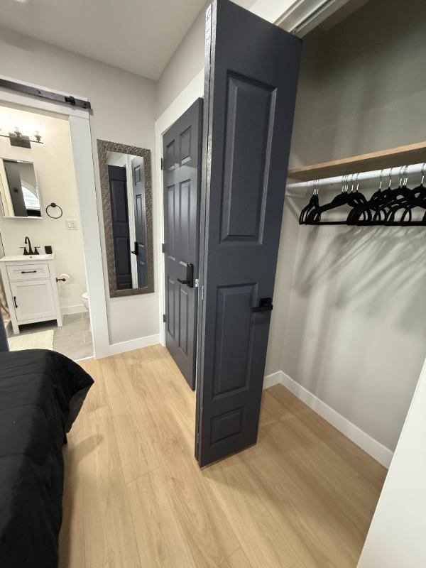 The master suite includes a private ensuite bathroom, bed, dresser, and ample closet space, offering both privacy and convenience. Guests enjoy access to shared common areas, including a fully equipped kitchen, living room, and laundry facilities. Highspeed internet, utilities, and essential amenities are included for your convenience.
