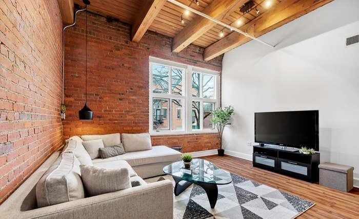 Convenient first-floor, one-bedroom condo blending original character with contemporary finishes. Completely renovated kitchen with quartz counters, solid wood floors throughout, and an open, light-filled living room featuring a wall of windows.