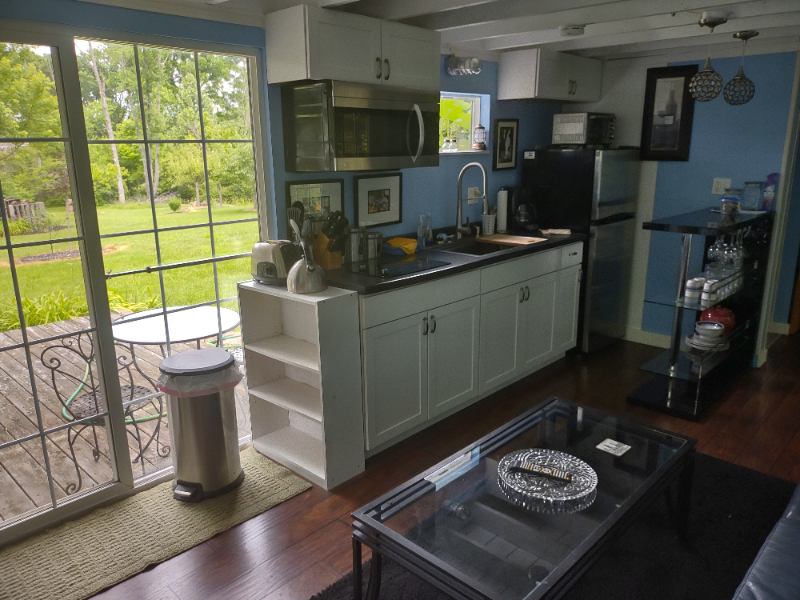 Available..., Now..! (Need or business days to finish cleaning and check credit employment..!) Furnished Short Term Leasing to month, happy to renew if good tenant. Private Guest House has Large Bedroom on second floor with New Queen Pillow Top Mattress and Bedding, Double Dressers, Closet and Work area with Desk. Included Bath Towels sheet sets, comforter. First Floor has a Good size Living area with New Leather Sofa not shown in pictures and Chair, Fireplace, Patio doors to Private Deck, Kitchen Area has Stainless Appliances, Microwave, Breakfast Bar, Pots, Pans Dishes and everything you need to make yourself at home. The Large Private Bathroom on first floor has vanity with sink, storage, Toilet, Rain Shower and Laundry.