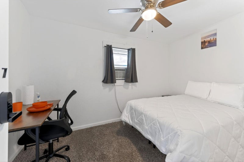 Private furnished room for rent. Enjoy living in a highquality House. This comfortable home is decorated with modern touches while providing the basic necessities. All that’s missing is you! The kitchen is equipped with two fridges, sink, microwave, oven and stovetop. It’s the perfect spot for you to cook at home and save money. The surrounding location is quiet, making it the perfect place to call home. $8 per week. Room rate includes all utilities, high speed WIFI, free laundry access, and Teladoc service. PROPERTY ID: 2