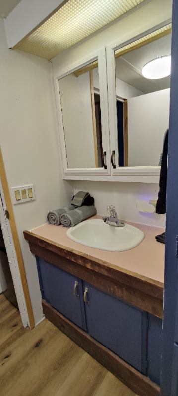 Charming bed, futon couch, bath single family home in Columbia, KY. This fully furnished single wide home features modern amenities including refrigerator, microwave, oven, stove, dining table, tv, fully furnished kitchen, fully furnished living area with futon couch and bedroom with full size bed.