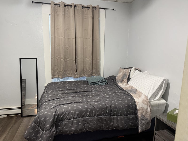Reasonable furnished room with shared living areas-kitchen, living room, bathroom. High speed internet and cable. In unit small washer and dryer. Month to month.