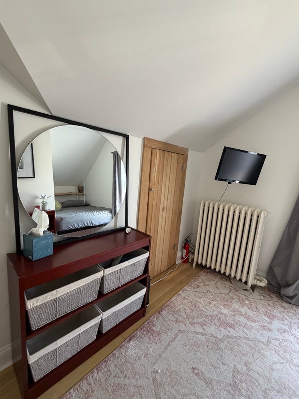 Sunny room available in a single family home. Closet in room, hardwood floors throughout, bathroom is directly across hallway from available room, skylight in hallway outside of room, house is two floors with recent renovations throughout house. season sun room. spot in driveway is included. House has a fully fenced in yard with a pergola and some outdoor seating. Corner lot, lots of sunshine.