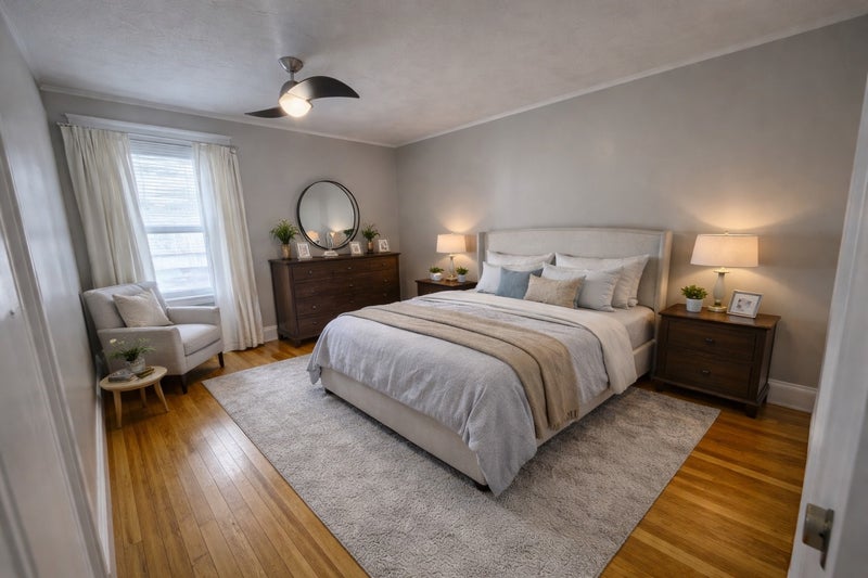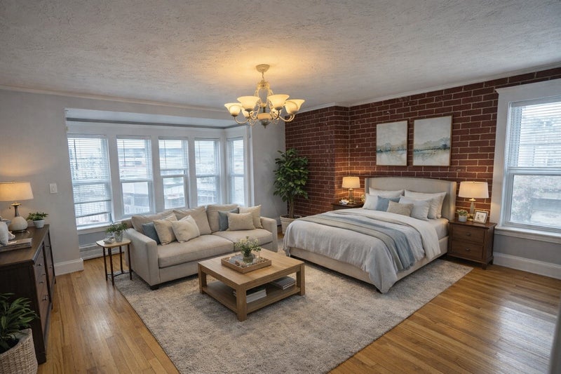 (Final photos towards end are digitally staged to show possible furniture layout.)