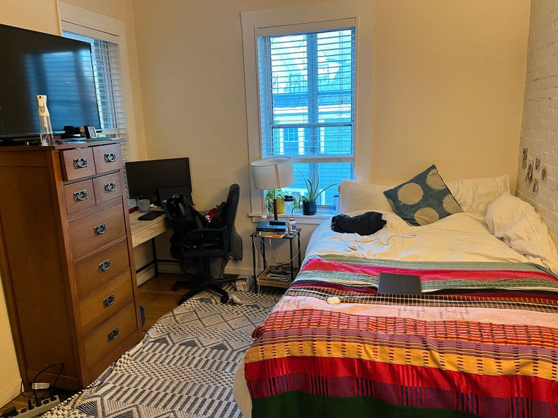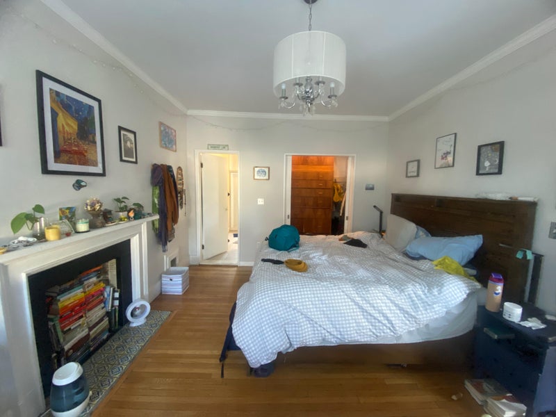 Room A is located on the second floor, and is 136 sqft. It is brightly lit with many south-facing windows, and comes with a private bathroom (located right next to it). The rent for Room A is $1590.
