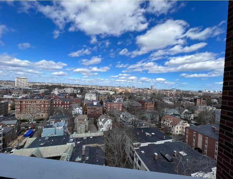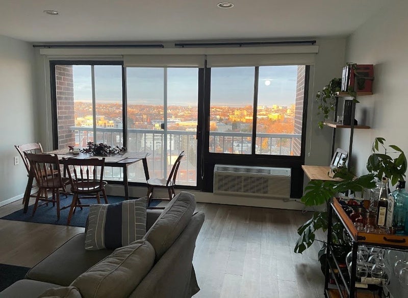 Juliette balcony + lots of natural light in the living room. Modern condo building with elevator and laundry machines. 5 minute walk from the T stop. Students preferred — message me if interested!