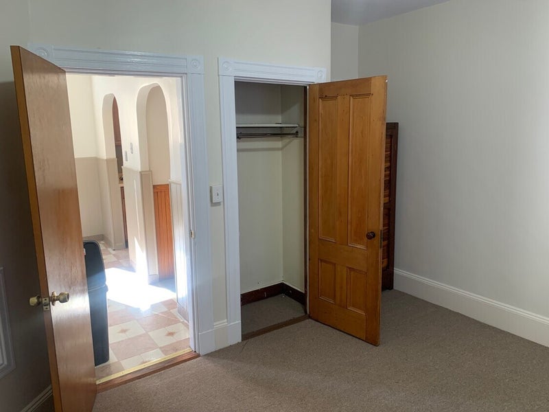 The Space: This is a high-volume unit featuring 10ft ceilings and original 1903 character (wainscoting, arched doorway)