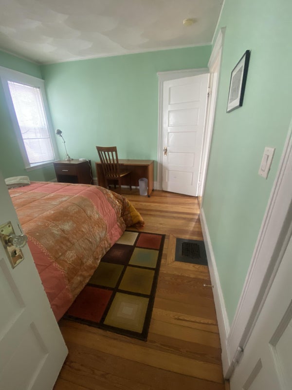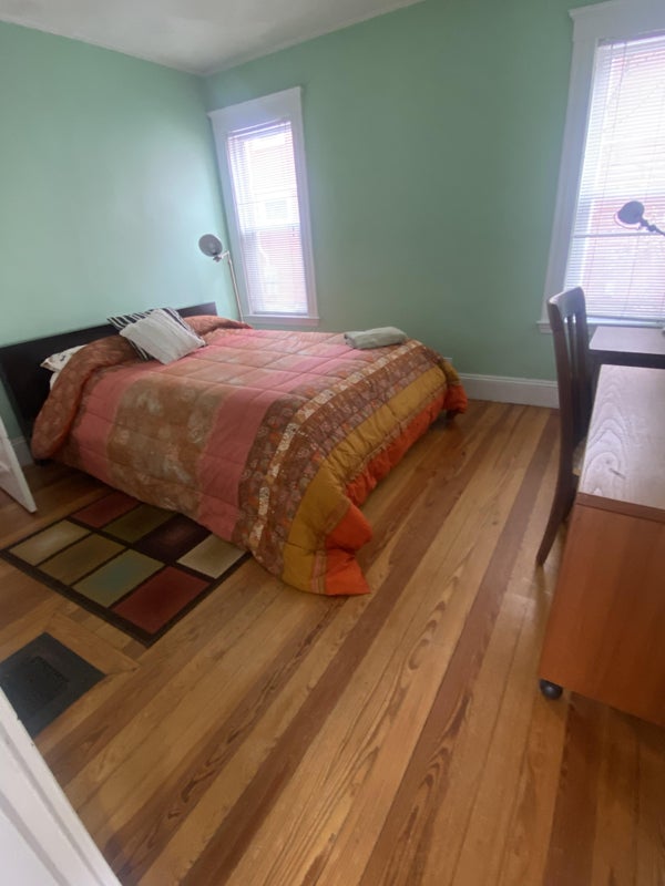 Furnished room for short term rent, or month-to-month on first floor of spacious, light filled, split level ("Philadelphia style") corner condo in East Arlington. Start date mid May 2026. Furnished bedroom is on the main floor, and the unit owner's bedroom is up a set of stairs, thus offering privacy to both the tenant and owner. The room is comfortably furnished with a queen bed, bedside table, and desk. The room has two closets, natural light, and boasts two entrances - one to the hallway, the other to the kitchen -perfect for midnight snacks or early morning coffee. Ideal for visiting grad students or academic staff, traveling medical professionals, or anyone who needs a short term place to check out the Boston area.