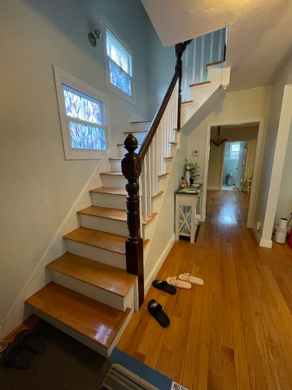 About: Big BR (size of ) w private bathroom on top floor of a br house (Medford). Big enough to split as a bed+office or a bed+mini living room. Stairs fit queen mattress max. Room comes with lock+key doorknob.