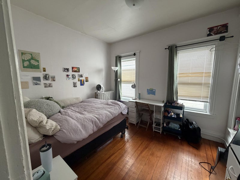 This room is part of a 3 bedroom apartment located on the second floor of a 3 unit house. We have a bathroom, living room, kitchen, and terrace. The location is great, a 5 minute walk from the Medford Tufts green line. There are retail stores and cafes around, restaurants, and frequent buses. Looking for female subletters for the summer. Please reach out to learn more!