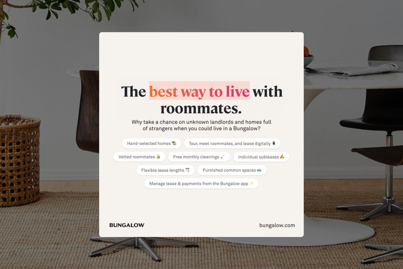 About Bungalow Bungalow takes the hassle out of housing. We offer private bedrooms and flexible leasing in the country’s most vibrant neighborhoods, match you with roommates you’ll love coming home to, and furnish all the common areas with designer picks. Offering monthly community events, we also make it easy for you to connect with other Bungalow members in your city.