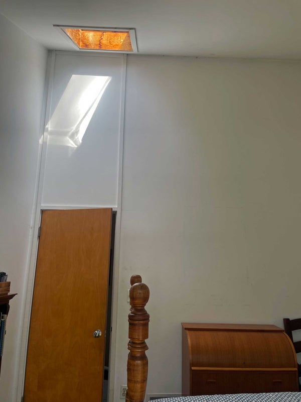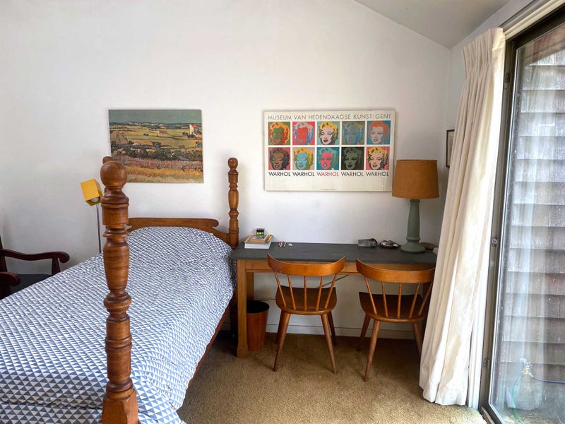 ROOM: • large skylight • cathedral ceiling • south-facing 6-ft wide sliding glass door direct to outdoors • large closet with ample hanging space, shelves, & overhead storage • wall-to-wall carpeting in excellent condition • flexible furnishing — furnished, unfurnished, or partly furnished (your choice) • direct natural light all day