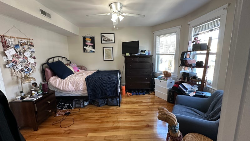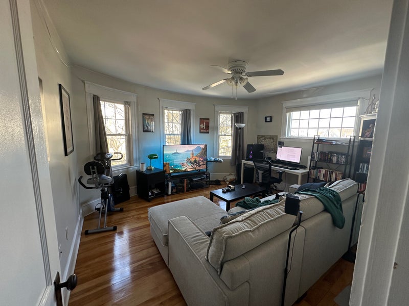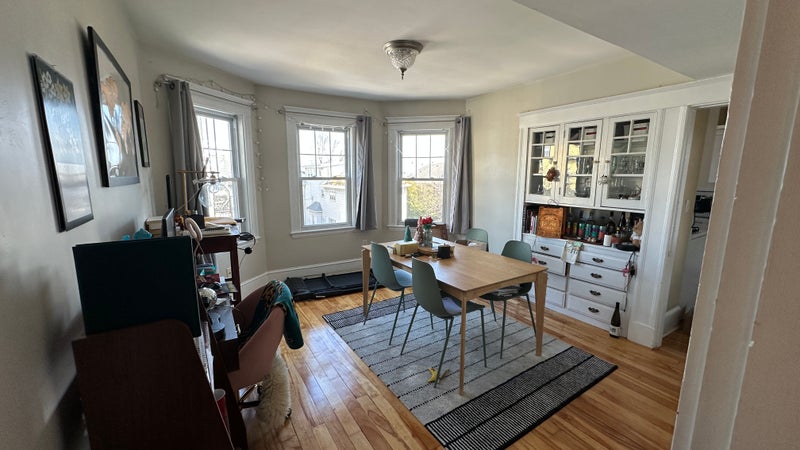 • Second floor • In‑unit washer and dryer • Dishwasher • Central air • Ceiling fans • Separate dining room (the setup now is that’d be your office, but we can figure it out) • Hardwood floors, good light • Living room (that I partially use as my office) • Front porch shared with the building; mostly-private back porch • Residential street in Winter Hill, that’s shockingly quiet for how close it is to Broadway • 1‑minute walk to the bus to Orange and Red Line • 10‑minute walk to the Green Line (Gilman Square on the Tufts E-line) • 30-minute walk to Davis, 45 minutes to Harvard and Porter • I have two older cats: Wiggles (“sleepy and regal”) and Airplane Joe (“chatty and dumb”)