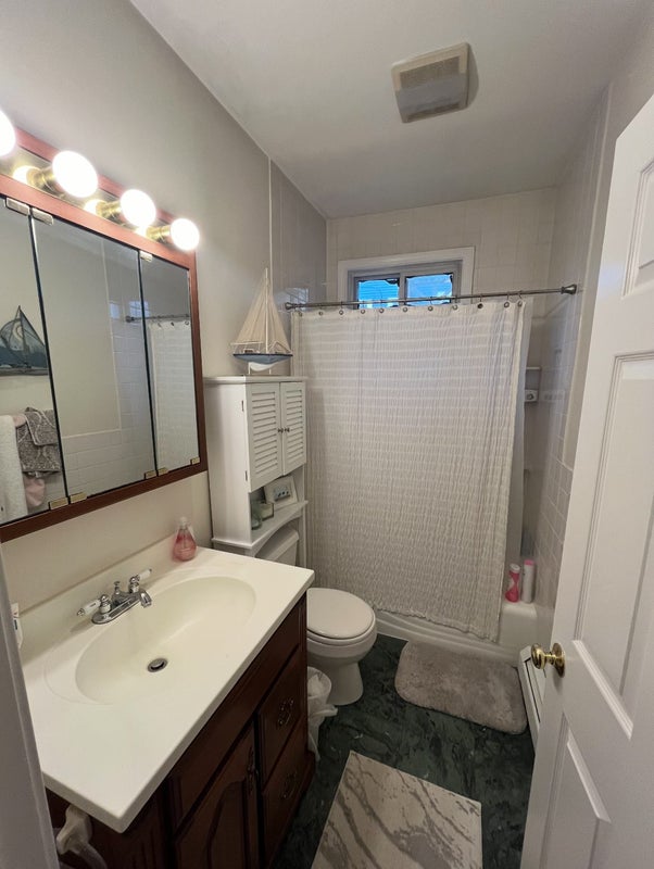 The space: the bedroom is large enough to fit a queen bed and has a walk in closet, with direct access to the back porch/ basement. The second bathroom would be mostly yours.