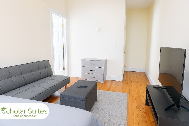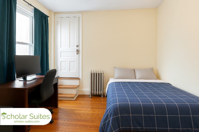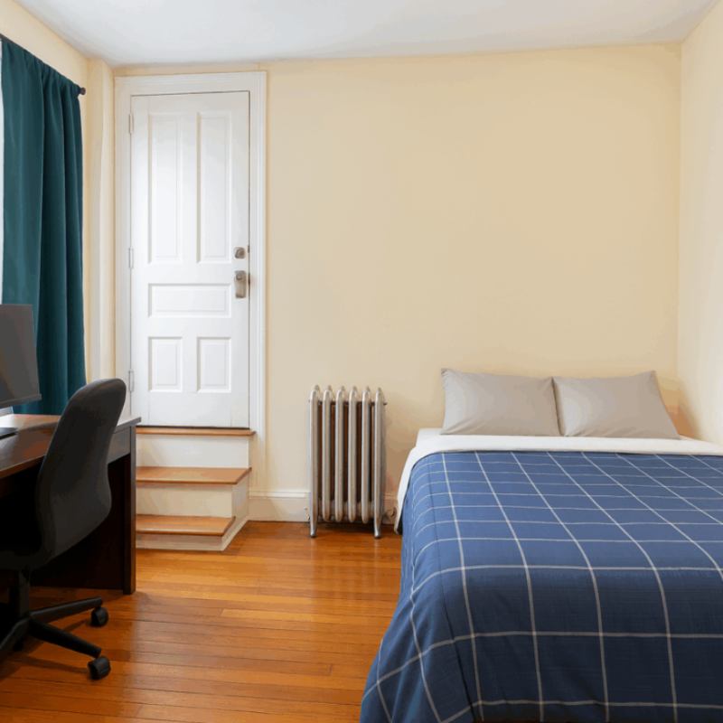 This private bedroom is located in a bedroom, bathroom unit. All common spaces in the house—including the living room, dining area, kitchen, and bathrooms—are furnished and professionally cleaned (biweekly) included with rent. The unit also features a large private deck and in building laundry. Exclusively for students, this unit fosters a communityfocused living environment ideal for those seeking affordable housing and likeminded roommates. Included with rent: Biweekly cleanings of all common spaces, all utilities, Wifi, Furnished common spaces. Contact us to learn more about bedroom furnishing and preordering kitchen and bedding essentials. Interested in rooming with friends? Contact us to learn which other bedrooms in this unit are still available.