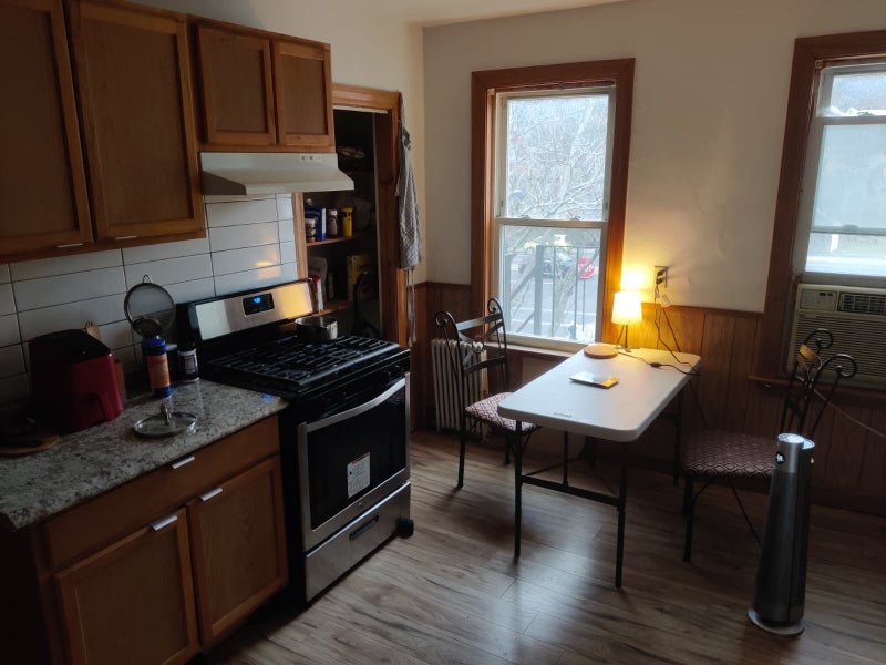 I am currently looking for a subtenant for my room in a Brookline apartment. The apartment itself is quite lovely, featuring a spacious kitchen and one bathroom.