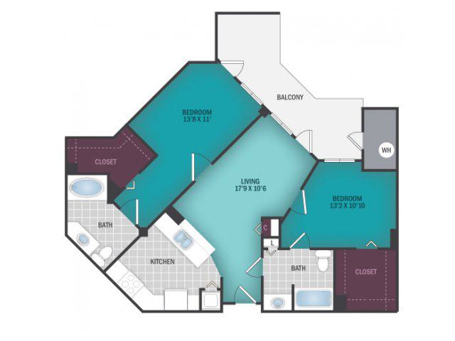 I've uploaded an image of the floor plan. The available bedroom is the one on the right - with its own full bathroom and a really, really big closet.