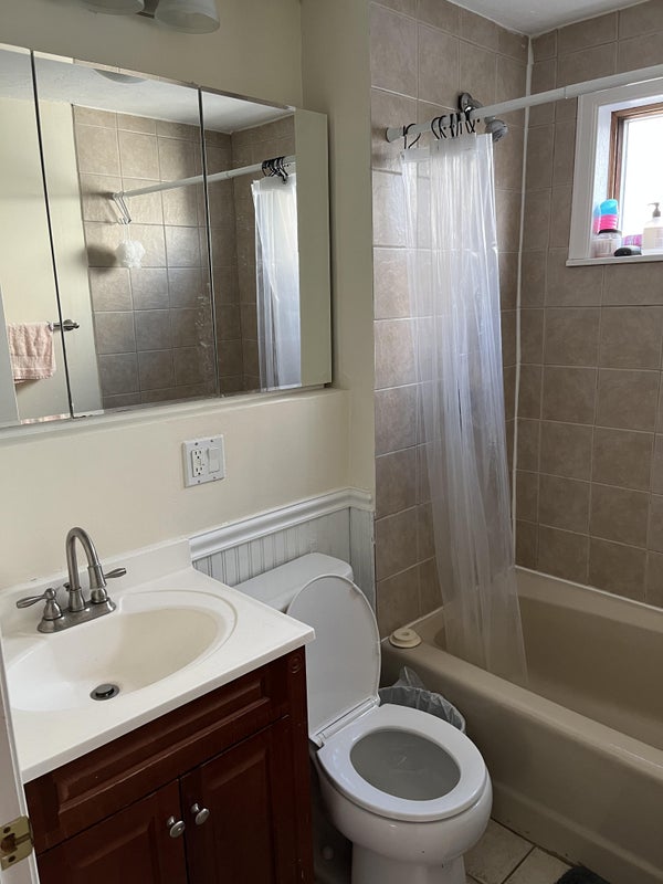 Private bathroom included on the first floor, adjacent to the bedroom (pictured). In-unit laundry included. The house has a large shared living room and kitchen (pictured), and backyard. Female roommates preferred. Private driveway parking access can be added for $200/month.