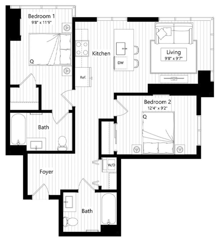 Fully furnished full apartment (2 Bed 2 Bath) in a highly amenitized building available for summer sublet!