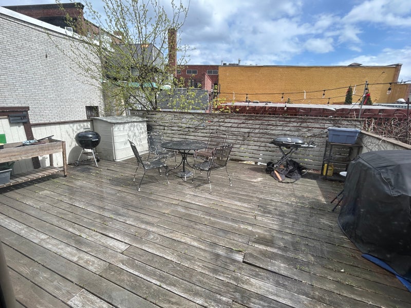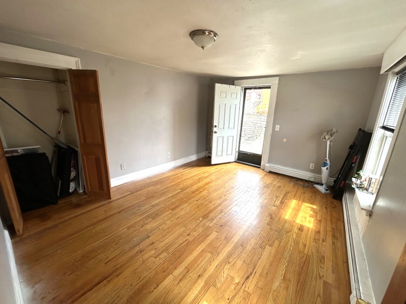 Large first floor bedroom with good natural light Private door to attached deck Bedroom is unfurnished Living room, kitchen, and bathroom downstairs (fully furnished) Laundry in building (2 washers and dryers, private entrance shared with 2 other units) Easy street parking One block to bus access to Green Line, downtown, Cambridge, BIDMC, and surrounding areas Window AC needed