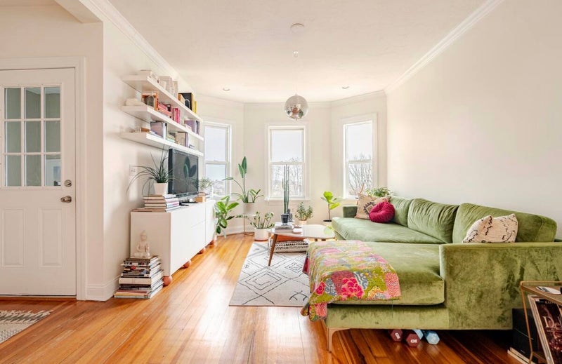 I own this 2 bedroom, 2 bathroom condo and am renting out the second bedroom. It's on the bright and sunny 3rd floor of a charming Dorchester triple-decker. I have central air, front and back porches, a washer/dryer in the kitchen, dishwasher. The living room and dining room area is a nice open, airy space.
