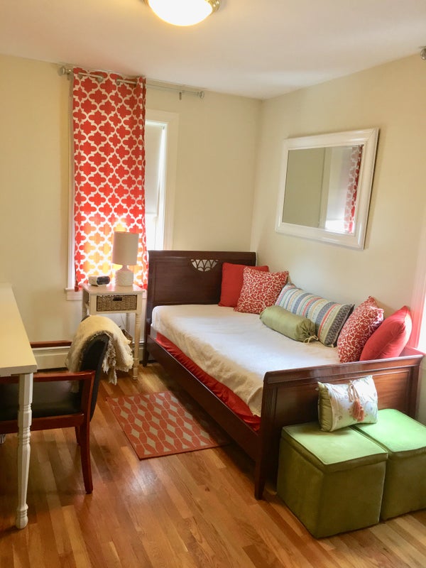 Attractive fully furnished, tastefully-decorated bedrooms in a sunny Victorian house in Harrison Hills with beautiful garden, hardwood flooring throughout, newly renovated modern kitchen with a marble island + new Bosch appliances, and marble-floor bathrooms. New, energy-efficient washer and dryer; Wi-Fi/Internet and all utilities included in rent; free on-street parking; 5-minute walk to commuter rail to downtown Boston (South Station); easy access buses connecting to T (Orange and Red Lines).
