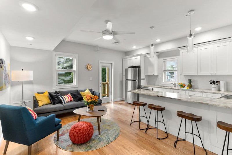 This fully furnished East Boston home has 5 bedrooms with 5 bathrooms (5 private baths). The property was completely renovated in 2020 and is a 2 minute walk to public transportation.